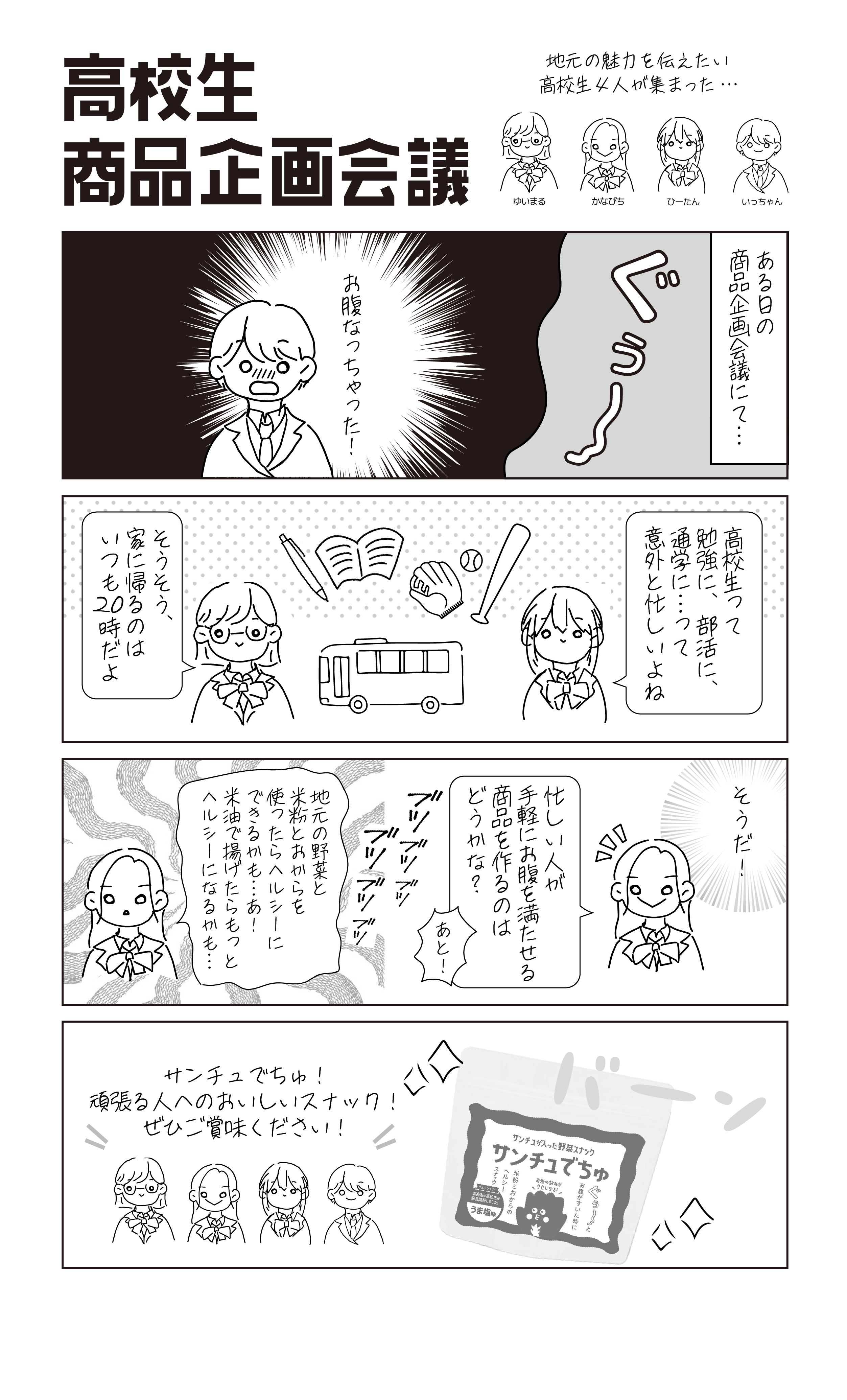 2024年4月から開発を開始した「サンチュでちゅ」はそのネーミングから材料選定、味の検討、パッケージデザインまで全ての工程に高校生が携わって作られています。